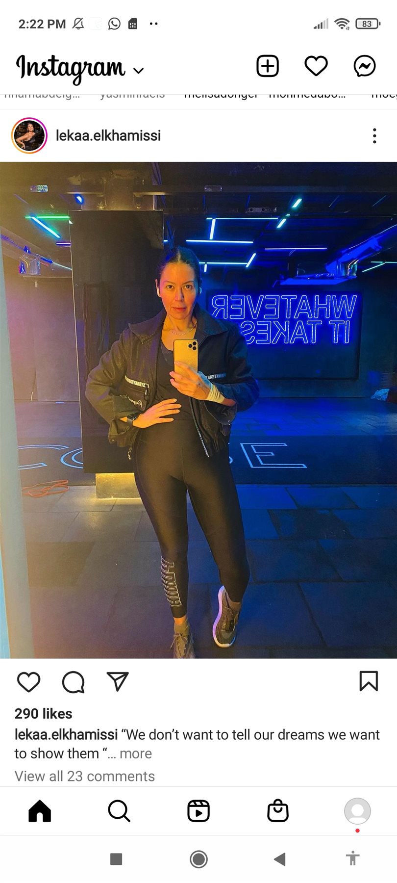 وظهرت لقاء الخميسي بإطلالة جذابة مرتدية ملابس رياضية من الجيم بدون مكياج، مما حازت على إعجاب متابعيها.