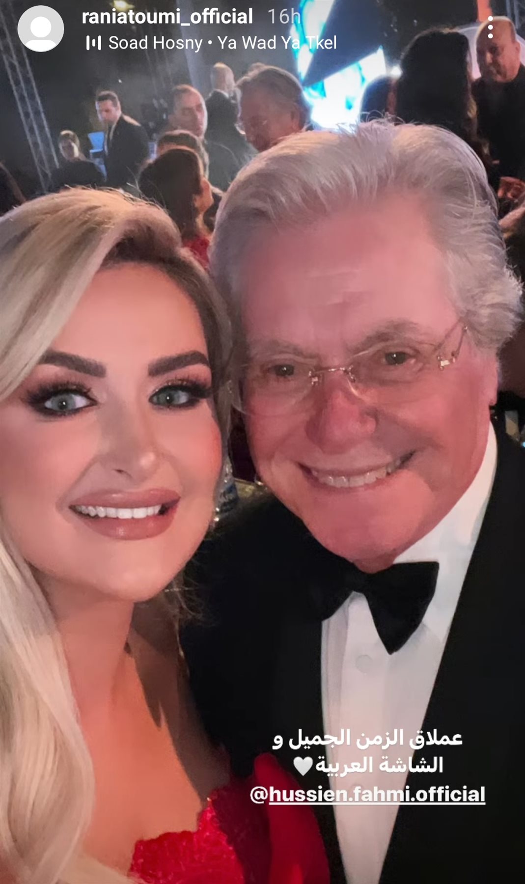 نشرت الفنانة التونسية رانيا التومى صورة مع المخرج خالد يوسف فى حفل ختام مهرجان القاهرة السينمائى الدولى وذلك عبر حسابها على موقع التواصل الاجتماعى انستجرام بخاصية الاستوري.