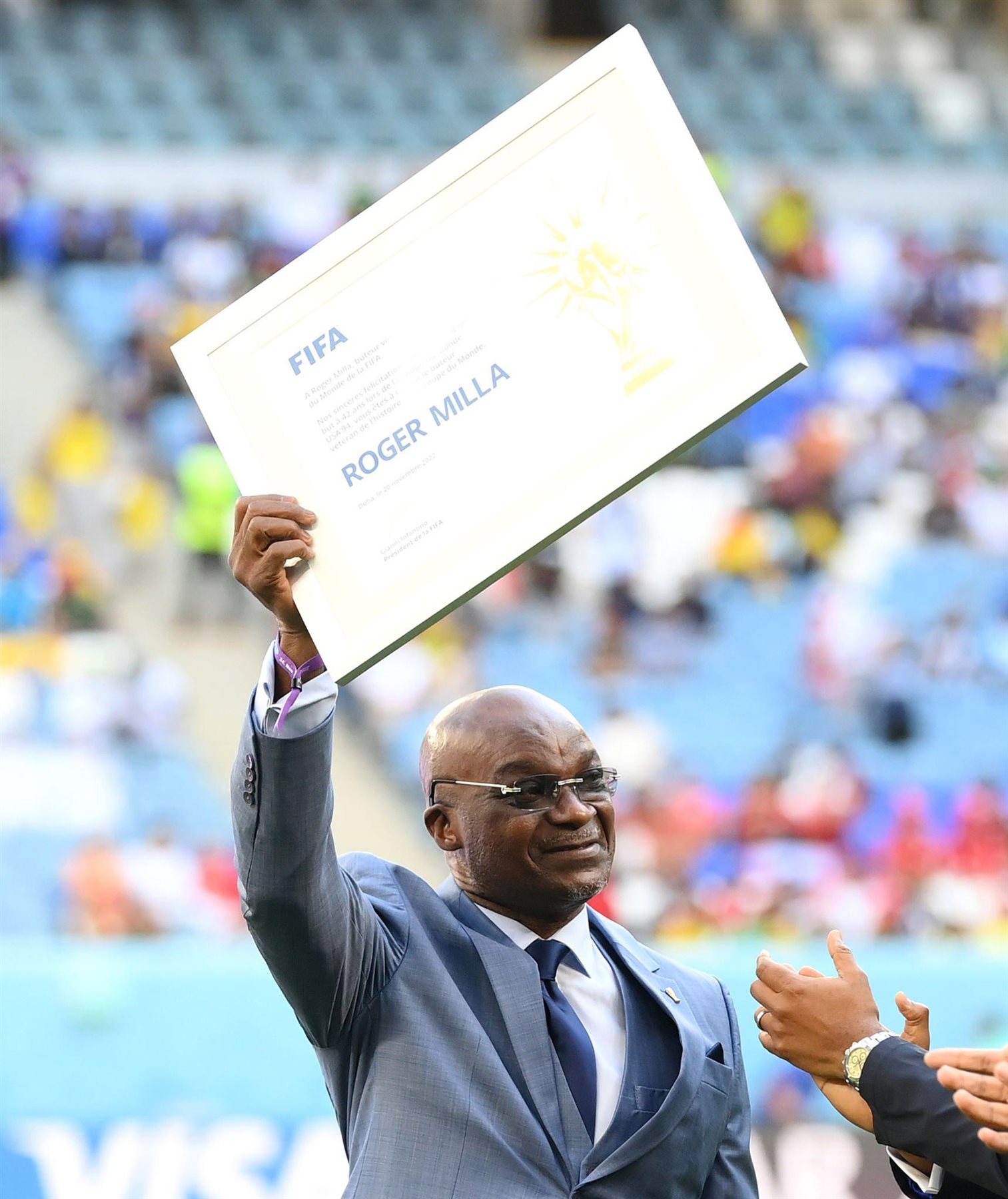 ومنح رئيس الفيفا روجيه ميلا شهادة تقدير باعتباره أحد أساطير الكرة الإفريقية، وأكبر لاعب يسجل هدفا في تاريخ بطولة كأس العالم (بعمر الـ 42 عاما).