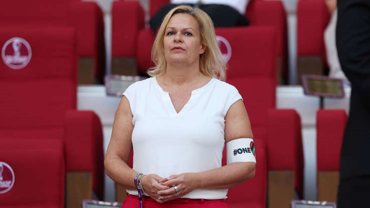 جاء ذلك ردا علي وزيرة الداخلية الألمانية نانسي فيرز التي اصرت على حضور مباراة الأمس بين ألمانيا واليابان مرتدية للشارة في المقصورة الرئيسية لاستاد خليفة الدولي، والتي انتهت بخسارة فادحة للألمان امام الساموراي، وذلك بالمخالفة لقرار الاتحاد الدولي لكرة القدم "فيفا" بمنع شارات "One Love" الداعمة للمثليين.