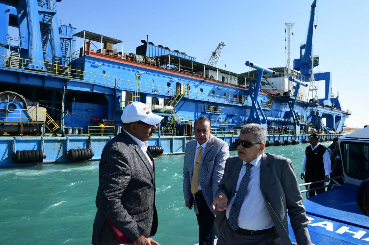 عقب ذلك، توجه رئيس الهيئة لتفقد مشروع تطوير القطاع الجنوبي، وحرص على تحية الأطقم العاملة على الكراكات المشاركة في المشروع بشقيه، كما تعرف على معدلات الإنجاز بموقع مشروع تطوير القطاع الجنوبي حيث تم إزالة ٣٧ مليون متر مكعب من الرمال المشبعة بالمياه حتى الآن بالمشروع.