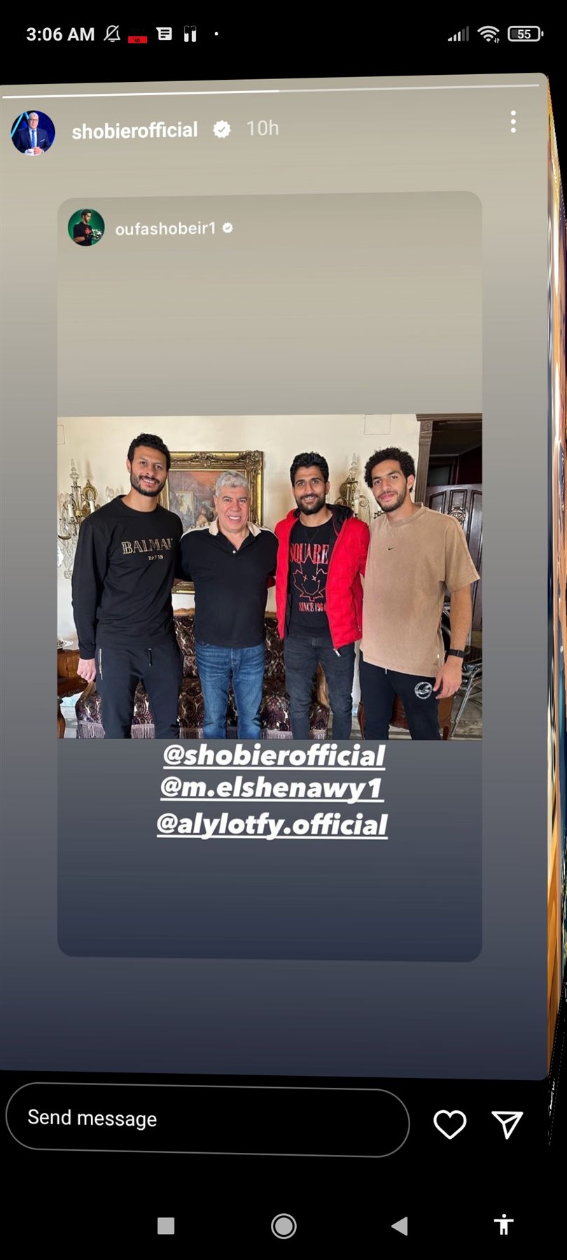 وظهر شوبير في الصورة برفقة حراس مرمي النادي الأهلي، محمد الشناوي وعلى لطفي و مصطفي شوبير، مما نال اعجاب متابعيه.