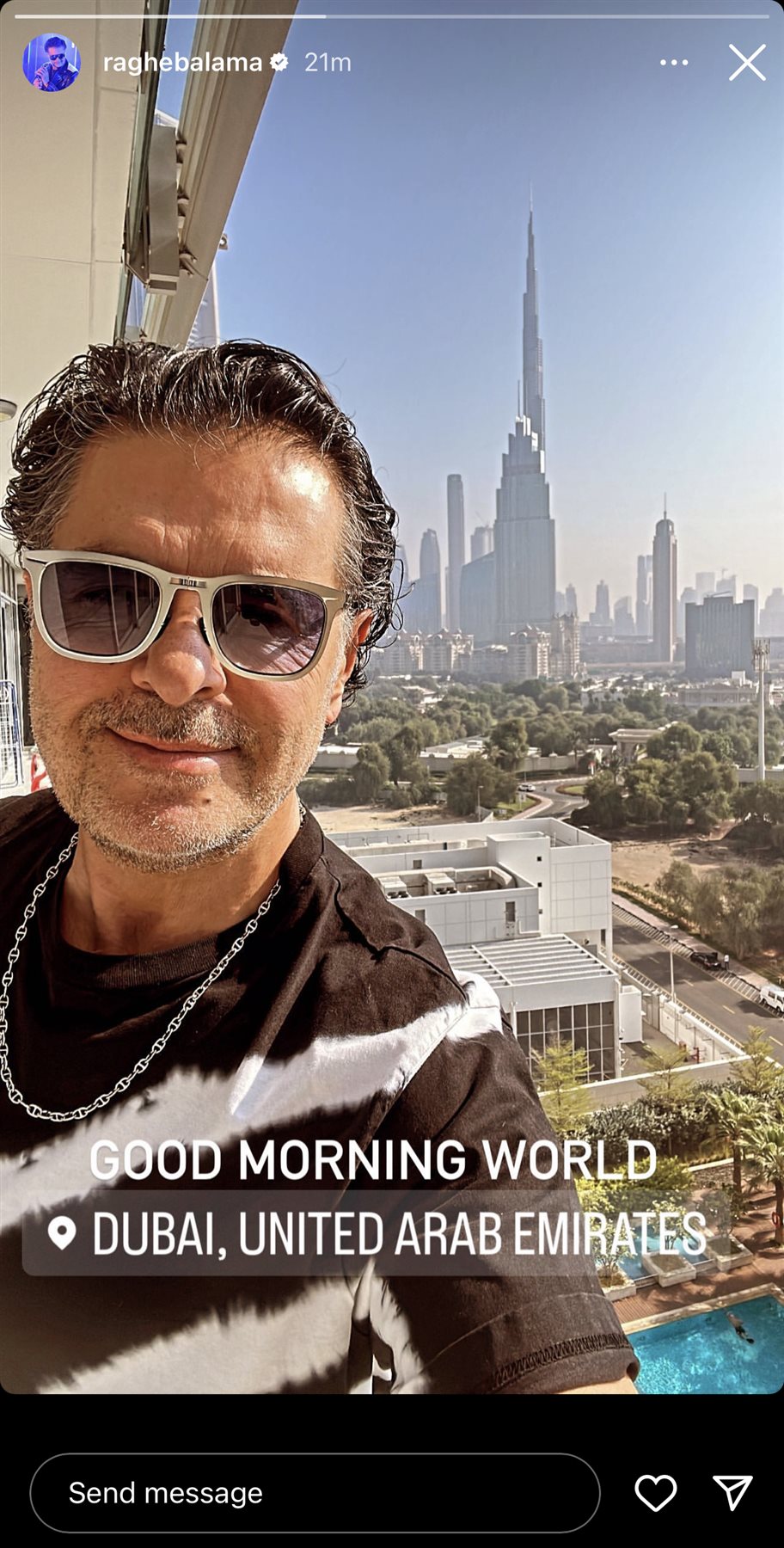وظهر راغب علامة عبر خاصية “الاستوري”، في سيلفي صباحي من دبي، ونالت الصورة إعجاب المتابعين.