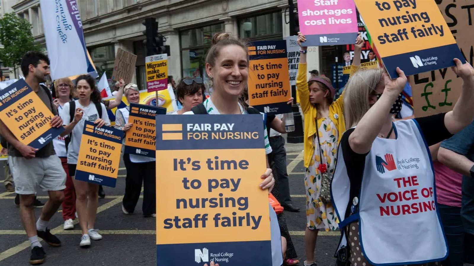 ويدخل أعضاء الأطقم الطبية في كل من إنجلترا وويلز وأيرلندا الشمالية في إضراب خلال يومي 15 و20 ديسمبر، وتشارك الكلية الملكية للتمريض فيه لأول مرة، بعد انقضاء مهلة الخمسة أيام التي وضعتها الكلية كحد أقصى للتفاوض مع الحكومة على رفع الأجور دون تقدم يذكر، كما تشارك الآلاف من ممرضات هيئة الخدمات الصحية الوطنية للمطالبة بزيادة الأجور بنسبة 5%، حيث يعربن عن استيائهن من خفض أجورهن بنسبة 20% منذ عام 2010، كما يطالبن بأجر عادل للنوبات الإضافية وتخفيف ضغط العمل الناتج عن شغور قياسي في وظائف التمريض.