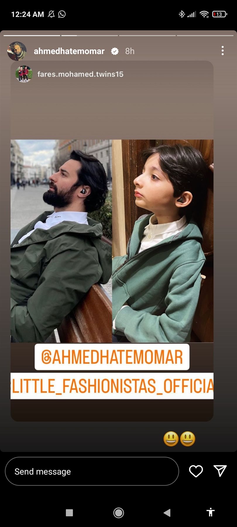وظهر أحمد حاتم في الصورة بجانبه صورة طفل يشبهه، ما نال إعجاب متابعيه.
