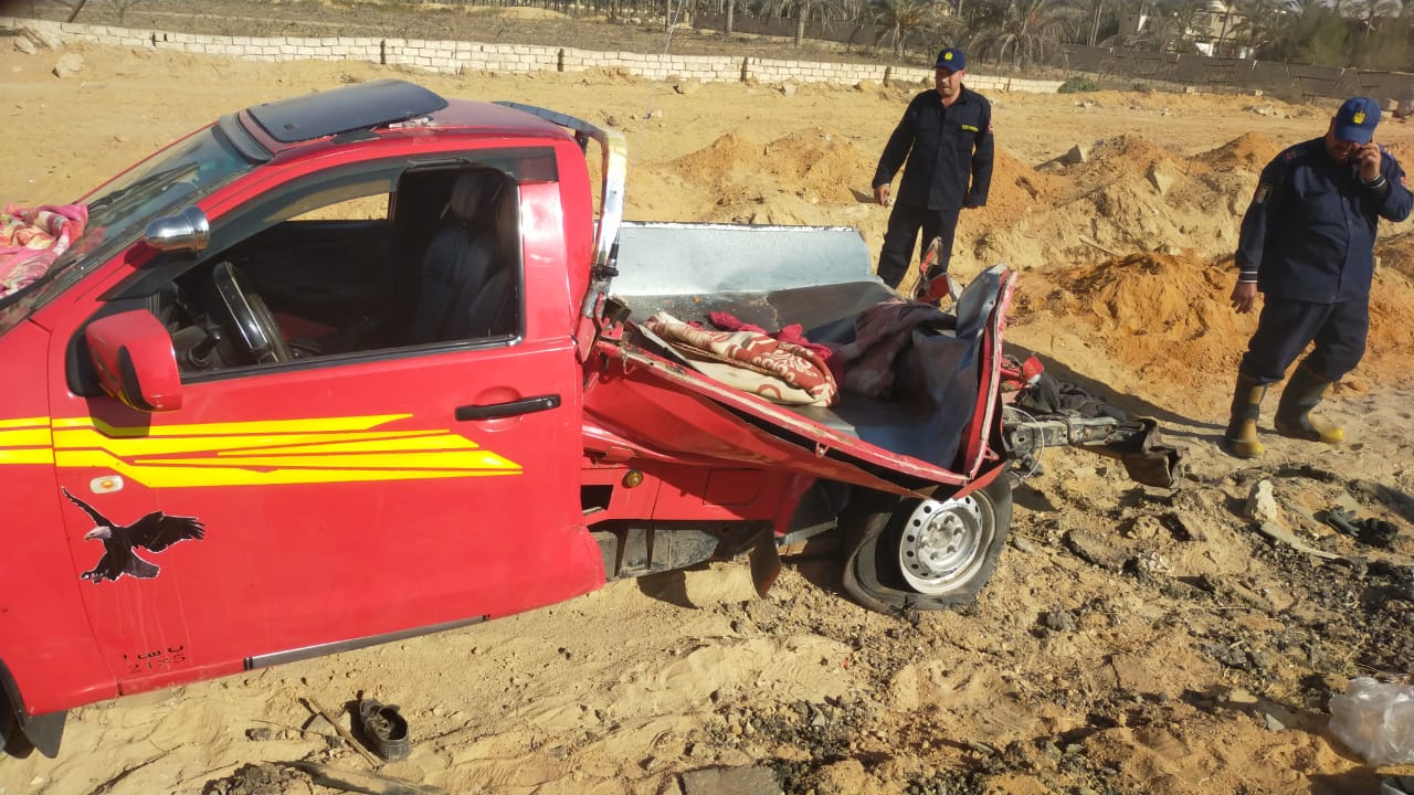 وانتقلت الأجهزة الأمنية لمكان الحادث وتبين اصطدام جرار زراعي بسيارة محملة بالعمالة مما أدى إلى مصرع 10 عمال حتى الآن .