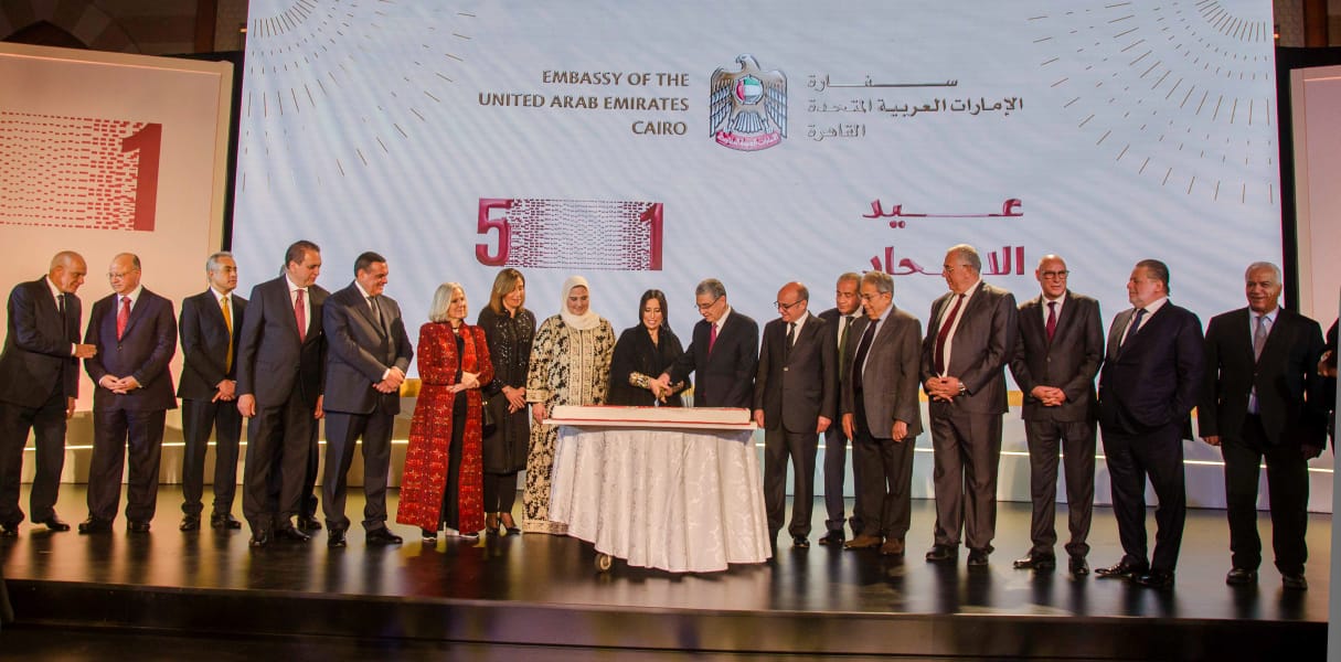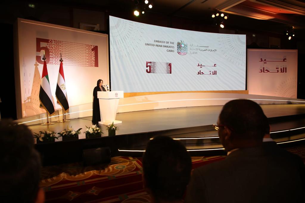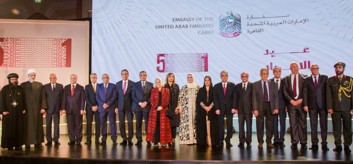 أقامت سفارة دولة الإمارات العربية المتحدة لدى جمهورية مصر العربية حفل استقبال بمناسبة عيد الاتحاد الـ51 للدولة، حضره عدد كبير من الوزراء وكبار رجال الدولة المصرية، وأعضاء مجلسي النواب والشيوخ، وأعضاء السلك الدبلوماسي المعتمدين لدى مصر، وكبار الصحفيين والإعلاميين، والفنانين، ورجال الدين الإسلامي والمسيحي.