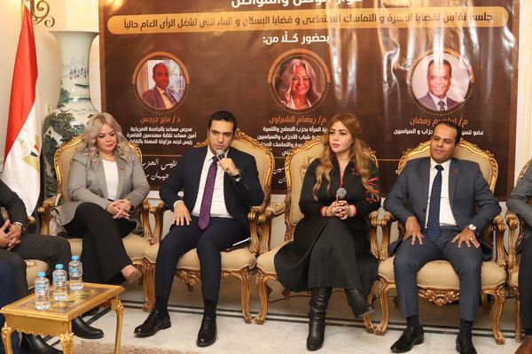 عقد أمانة الشباب المركزية بحزب مصر أكتوبر، جلسة حوارية، بحضور د. جيهان مديح رئيس الحزب و د. محمد بدران النائب الأول والأمين العام و د. هشام الحداد أمين الشباب المركزي ، لمناقشة قضايا الأسرة والتماسك الاجتماعي وقضايا الإسكان والبناء، وذلك في إطار ال١٠٠ جلسة حوارية المزمع عقدها.