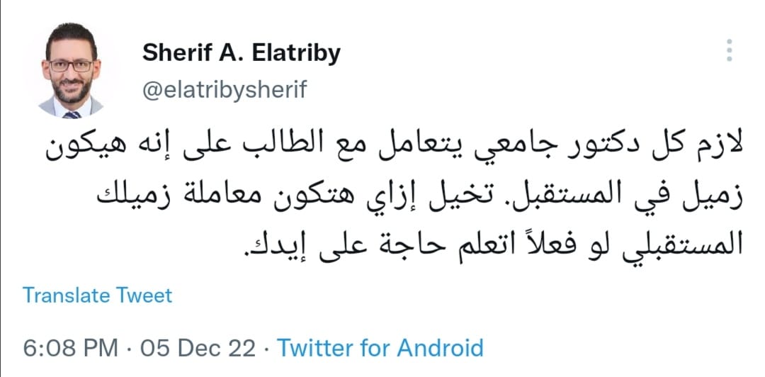 وكتب الدكتور “النهاردة شفت إجابات طالب في امتحان الميدترم بعد ما سلم ورقته فقلته انتا محتاج تذاكر أكتر” .