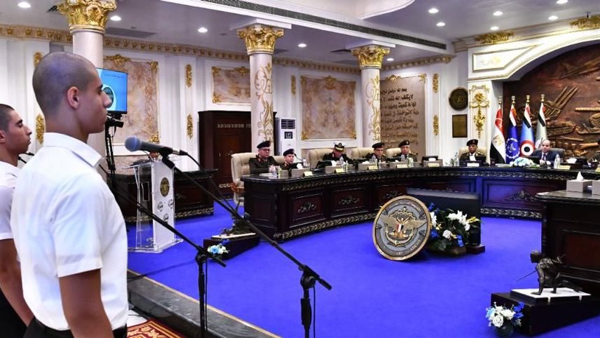 وأعلن السفير بسام راضي المتحدث الرسمى باسم رئاسة الجمهورية بأن الرئيس عبد الفتاح السيسي شهد صباح اليوم , اختبارات كشف الهيئة للطلاب الجدد المتقدمين للالتحاق بالأكاديمية العسكرية والكليات العسكرية.