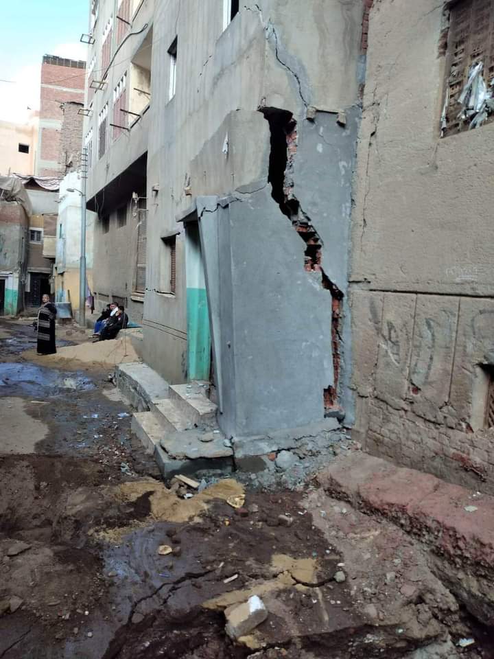 واكد الأهالي أنهم فوجئوا بهبوط ارضي في شارعهم وظهور تشققات في منازلهم كبيرة وسقوط أحد وجهات المنازل بالشارع.