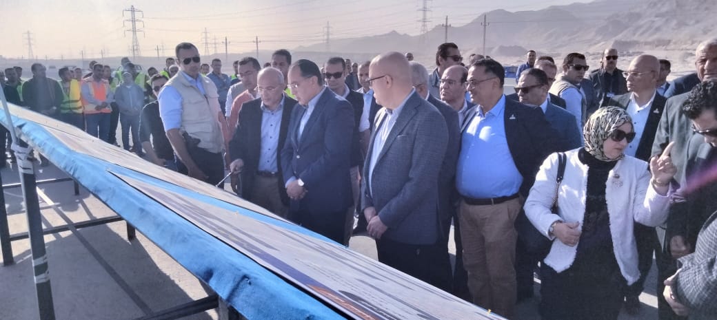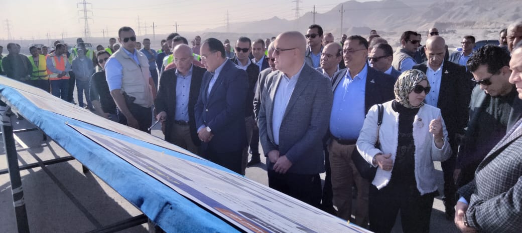 تفقد الدكتور مصطفي مدبولي رئيس مجلس الوزراء تطوير طريق السويس / السخنة بطول ٦٠ كم ، ورافقه وزراء الاسكان والشباب والرياضة والتنمية المحلية .