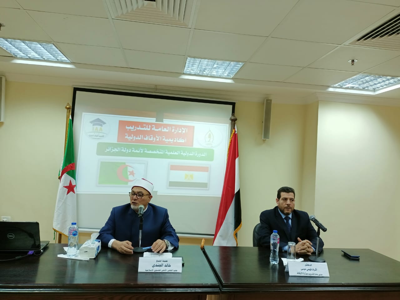 عقدت وزارة الأوقاف، في إطار الدور الريادي لجمهورية مصر العربية، ودور وزارة الأوقاف في نشر الفكر الوسطي المستنير داخل مصر وخارجها،المحاضرة الثانية في اليوم الثالث، للدورة العلمية المتخصصة لأئمة ووكلاء الأوقاف بدولة الجزائر الشقيقة بأكاديمية الأوقاف الدولية لتدريب الأئمة والواعظات وإعداد المدربين بمدينة السادس من أكتوبر .