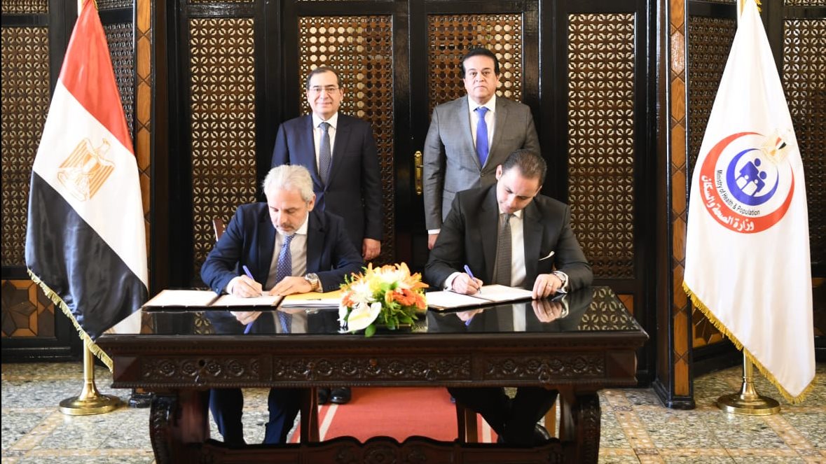 وقع البروتوكول الدكتور محمد الطيب مستشار وزير الصحة والصحة للحوكمة والشؤون الفنية، والمهندس ماتيا كامباناتي المدير العام لشركة إيوك الإيطالية بمصر، وذلك بحضورالمحاسب هشام نورالدين رئيس الإدارة المركزية لمكتب وزير البترول، والمهندس علاء حجر وكيل وزارة البترول والثروة المعدنية للمكتب الفني، بمقر ديوان عام وزارة الصحة والسكان.
