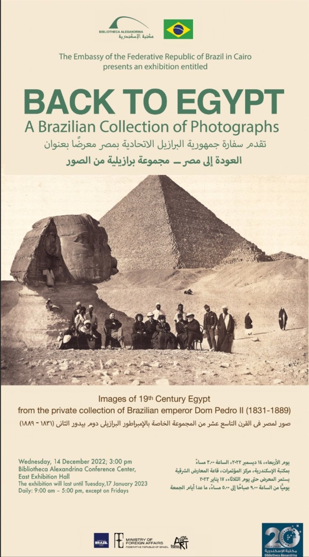 تنظم سفارة جمهورية البرازيل الاتحادية بمصر معرضاً بعنوان "العودة إلي مصر" بمجموعة من الصور التي التقطها المصور البرازيلي دوم بيدرو الثاني في القرن التاسع عشر.