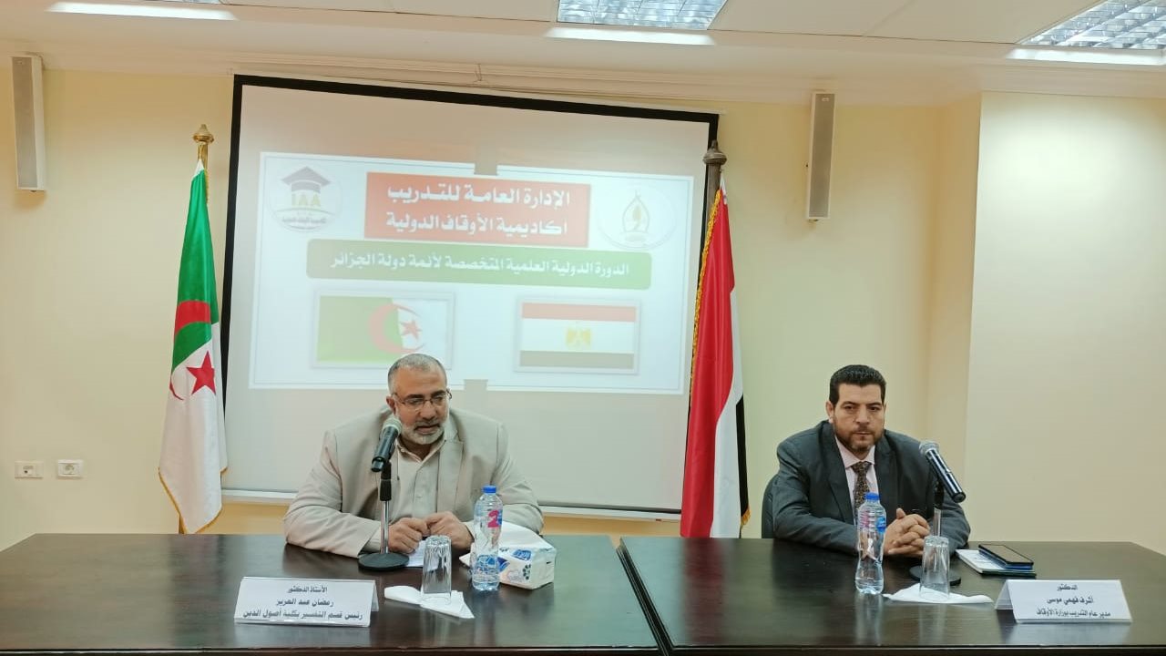 استمرت فعاليات الدورة العلمية المتخصصة لأئمة ووكلاء الأوقاف بدولة الجزائر الشقيقة بأكاديمية الأوقاف الدولية لتدريب الأئمة والواعظات وإعداد المدربين بمدينة السادس من أكتوبر اليوم الأربعاء.