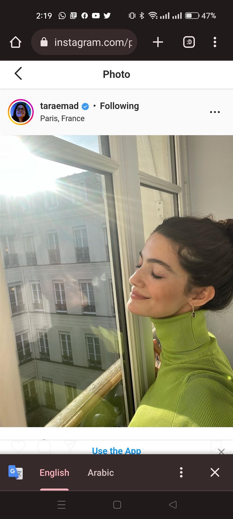 وظهرت تارا في الصورة بإطلالة شتوية متميزة، مرتدية هايكول أخضر، بدون مكياچ.