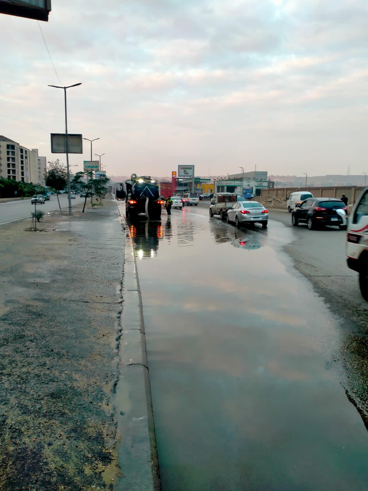 وأجرى اللواء محمود نافع رئيس شركة الصرف الصحي بالاسكندرية، جولات تفقدية على مدار اليوم لمتابعة أعمال رفع تجمعات مياه الأمطار علي الطريق الصحراوي التي قامت معدات وسيارات الشركة بالتعامل معها بدون أي تأثير علي حركة السيارات، مشيرا أن مياه الامطار وصلت كثافتها لغزيرة ببعض المناطق مساءً خاصة مناطق غرب الإسكندرية، وأكد علي استمرار تمركز سيارات ومعدات الشركة علي مدار ال ٢٤ ساعة في جميع أنحاء المحافظة للتعامل مع أي تجمعات لمياه الأمطار فور حدوثها، وإستمرار أعمال تطهير الشنايش والبيارات لرفع العبئ عن الشنايش والمحطات.