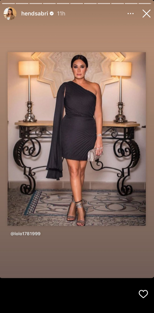 وظهرت هند صبري بأطلالة جذابة أنيقة مرتدية فستان قصير باللون الاسود ، مما حازت علي اعجاب متابعيها.