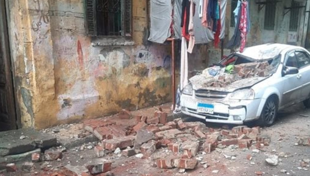 تعرضت سيارة للاتلاف بشكل كامل بعدما كانت موجودة أسفل عقار حيث انهارت أجزاء من العقار عليها صباح الأحد بمنطقة مينا البصل في حي غرب الإسكندرية.