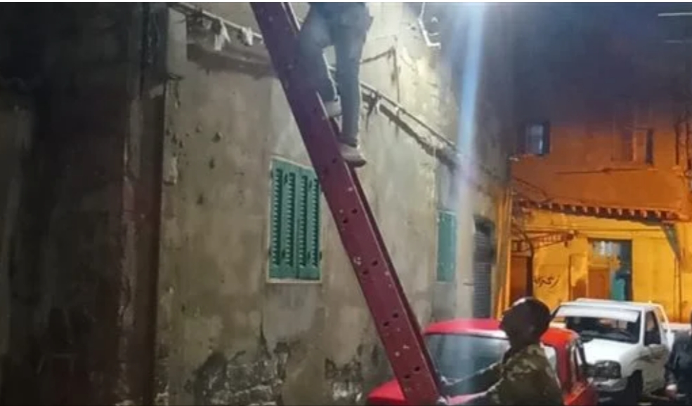 جاء ذلك نتيجة الأمطار الغزيرة التي هطلت منذ منتصف الليل حيث اصيب سكان العقار بحالة من الذعر وهرعوا إلى خارج العقار.