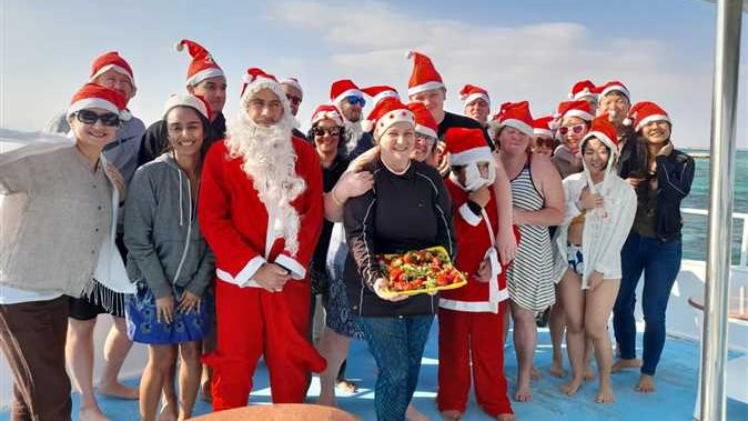 فاجأ بابا نويل، السائحين الأجانب على شواطئ مرسى علم، قادما علي “كارتة” ووزع الهدايا على السائحين والأطفال من مختلف الجنسيات، تزامنا مع احتفالات الكريسماس.