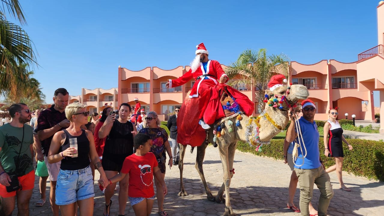 وأشار عاطف عثمان الخبير السياحي بالبحر الأحمر، إلى أن فنادق مرسي علم استقبلت بابا نويل قادما علي كارتة بزفة بالطبل والمزمار البلدي، وسط تفاعل وفرحة السائحين الذين شاركوا بابا نويل احتفالات الكريسماس وتوزيع الهدايا علي شواطئ مرسى علم.