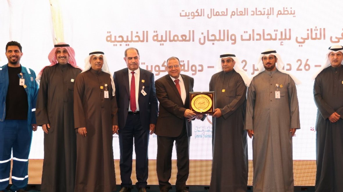 جاء ذلك خلال مشاركته بوفد عمالى برئاسته ضم أعضاء من مجلس ادارة نقابة الصحافة والطباعة لفاعليات الملتقى الثانى الاتحادات العمالية العربية واللجان النقابية بدول مجلس التعاون الخليجى المنعقد بالكويت حاليا؛ وبحضور فايز المطيرى المدير العام لمنظمة العمل العربة؛ وجمال القادرى الأمين العام للاتحاد الدولى لنقابات العمال العرب؛ وأحمد عقلة رئيس الاتحاد العام لعمال دولة الكويت.