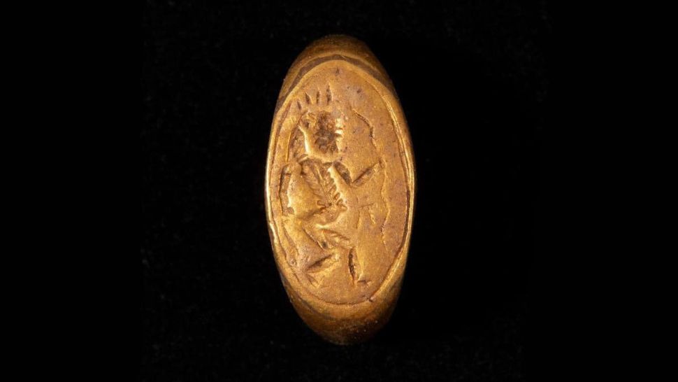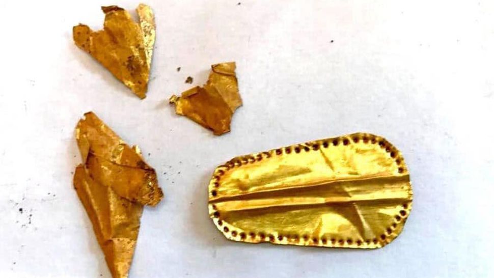 عثر علماء الآثار على كنز دفين من المشغولات الذهبية، بما في ذلك عقد وثلاث حلقات، وتحمل قطعة من المجوهرات نقش باسم الإله “بس” المعروف أيضًا باسم "إله المرح".