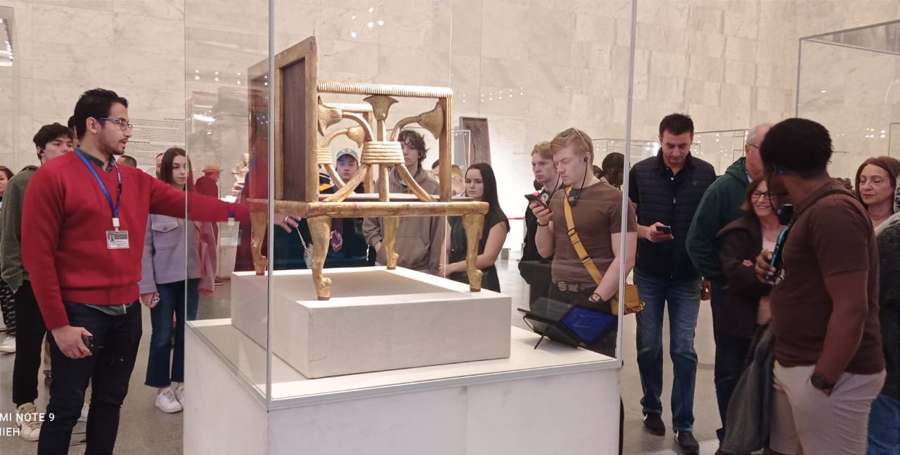 و أوضح لهم الدكتور أحمد غنيم دور المتحف كقبلة لكثير من الشخصيات العامة وزيارات الوفود الرسمية من عشاق الحضارة المصرية القديمة، خلال تواجدهم فى مصر، مما جعله واجهة ثقافية، ودلالة على شغفهم بمعالم هذه الحضارة وارثها الثقافي .