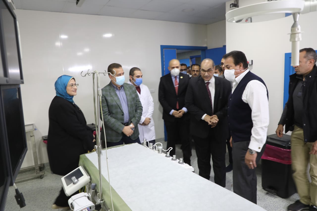 تفقد الوزير والمحافظ مبنى الغسيل الكلوي، بطاقة 24 ماكينة غسيل، كما تفقد مبنى الطوارئ، وقسم الأشعة والرعاية المركزة العيادات الخارجية، والتي وصل عدد المنتفعين بها 157 ألف و20 مواطن خلال شهر، لافتا إلى اطمئنانه على توافر القوى البشرية بكافة التخصصات، موجها بضرورة التنسيق بين المستشفيات المحيطة لتحقيق التكامل وسد العجز بالمستشفيات التي تشهد نقصا في بعض التخصصات الطبية.