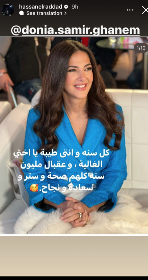 ونشرت حسن الرداد صور لدنيا سمير غانم و علق قائلا : كل سنة و انتي طيبه ا اختي الغاليه ، و عقبال مليون سنه كلهم ستر و صحة و سعاده و نجاح .