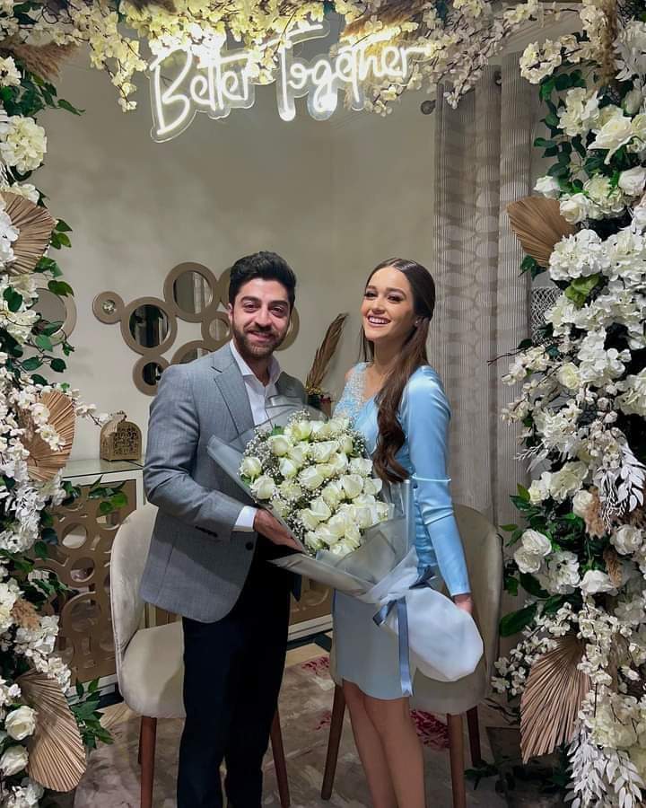تداول مستخدمو الفيسبوك، صورا من حفل خطوبة الفنانة الشابة نور إيهاب على الفنان نور بدر، مساء أمس السبت الموافق 31 ديسمبر الماضي، بالتزامن مع احتفالات رأس السنة الميلادية الجديدة.