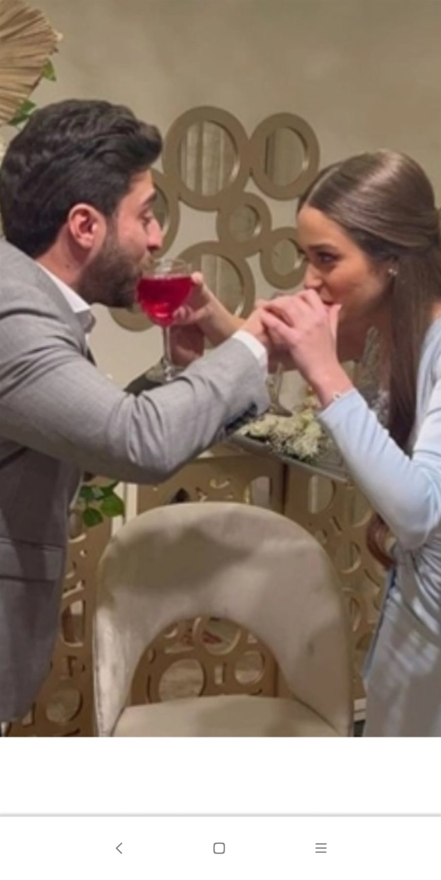 وكانت أبرز صورة انتشرت وقال الكثير أنها تقبل يد خطيبها، ولكن الحقيقة أنها تمسك بيد خطيبها وهي تشرب عصير الخطوبة ، واليكم الصور …