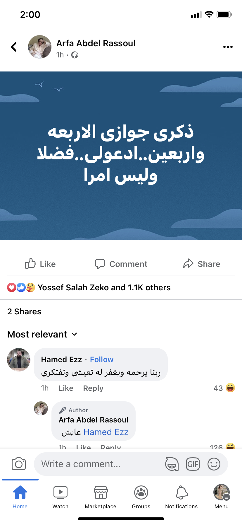 وكتبت عارفة عبد الرسول عبر حسابها بفيسبوك: "ذكرى جوازى الأربعة وأربعين..أدعولى..فضلا وليس امرا".