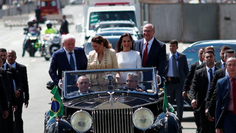 قال الرئيس البرازيلي لويس إيناسيو لولا دا سيلفا مساء اليوم الأحد، إنه سيعمل على جعل بلاده في طليعة الاقتصاد العالمي، وذلك في أول تعليق له بعد أدائه اليمين الدستورية رئيسًا لدولة البرازيل وذلك ضمن مراسم احتفال شهدت حشودًا من الآلاف من مناصري دا سيلفا في شوارع العاصمة مرتدين اللون الأحمر.