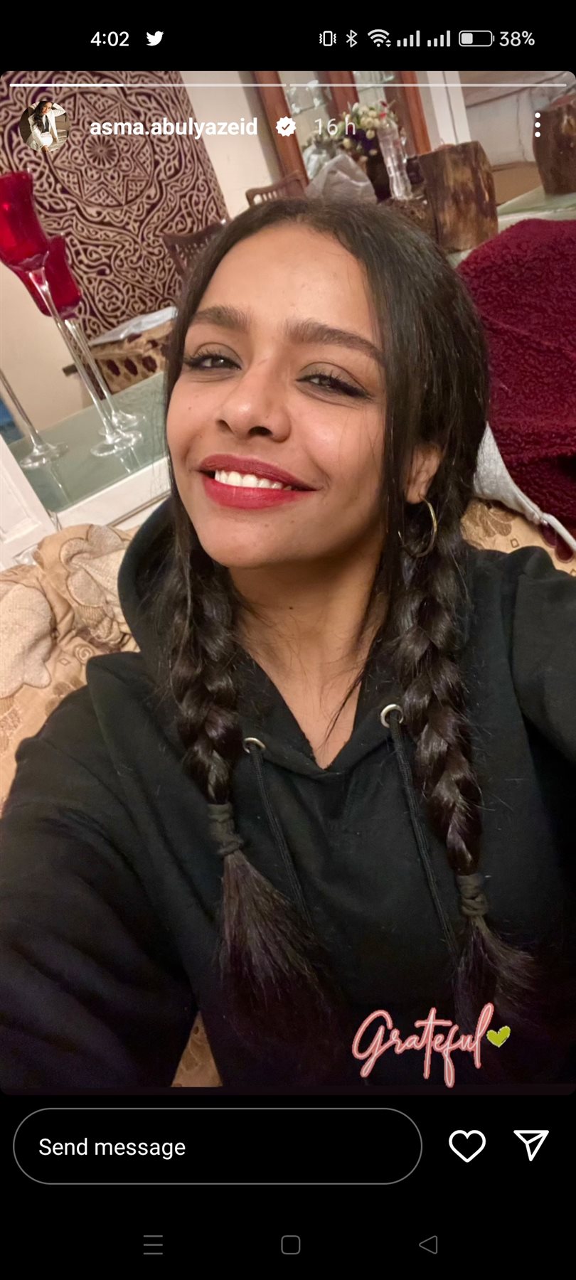 شاركت أسماء أبو اليزيد متابعيها، صورة جديدة لها عبر صفحتها الرسمية على موقع التواصل الاجتماعي لتبادل الصورة والفيديوهات القصيرة انستجرام خلال خاصية الاستوري.