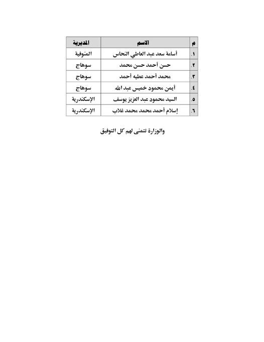 اعتمد الدكتور محمد مختار جمعة وزير الأوقاف، 6 خطباء مكافأة جدد من خريجي المراكز الثقافية على بند التحسين، وهم: