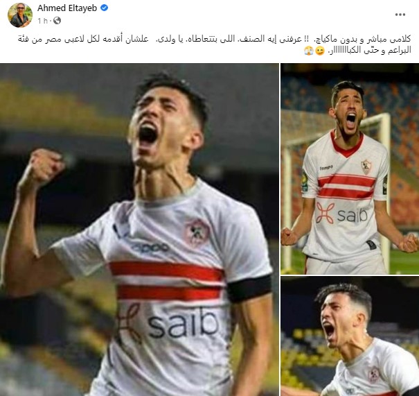 وكتب أحمد الطيب "ساخرا" عبر حسابه الشخصي على موقع الشخصي على موقع التواصل الاجتماعي "فيس بوك":" كلامى مباشر و بدون ماكياچ!! عرفنى إيه الصنف اللى بتتعاطاه يا ولدى علشان أقدمه لكل لاعبى مصر من فئة البراعم وحتّى الكبااااااار".