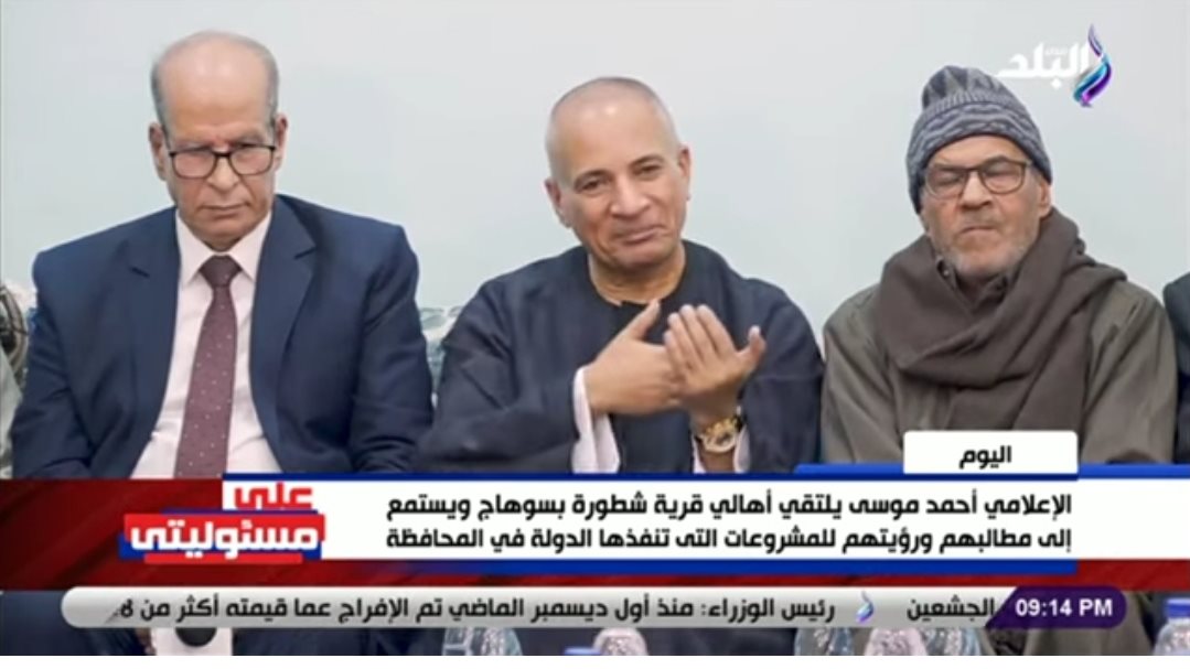 وأكمل الإعلامي أحمد موسى :" المصريين هم من يعملون في المشروعات الكبرى التي يتم تنفيذها في كافة أنحاء الجمهورية ".