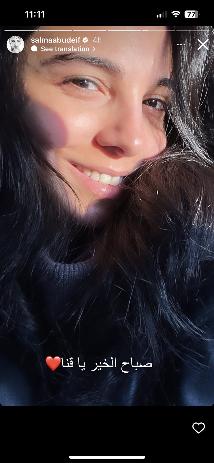 وخطفت الأنظار بجمالها الطبيعي دون التكلف في مستحضرات التجميل، وعلقت: صباح الخير يا قنا.