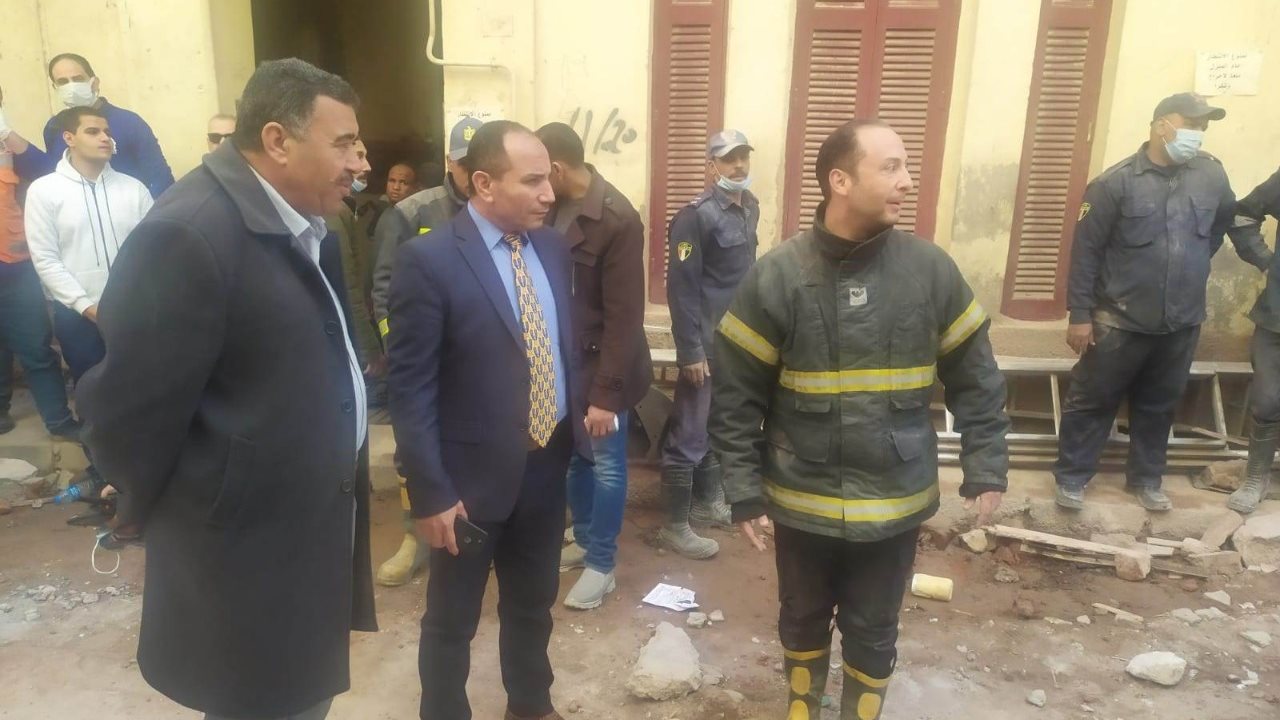 حيث انتقل إلى موقع الحادث كل من اللواء مهندس شاكر يونس السكرتير العام للمحافظة والعميد علاء عبد الجابر السكرتير العام المساعد للمحافظة وقوات الحماية المدنية وتم الدفع بـ 3 سيارات حماية مدنية واكثر من 12 سيارة اسعاف وسيارات الحملة الميكانيكية بالمركز لرفع الأنقاض وانتشال السكان وفريق الإغاثة التابع لمديرية التضامن الاجتماعي في حضور محمد بشير رئيس غرب ونوابه ومعدات الحملة الميكانيكية وتم فرض طوق أمني حول المنزل وتمكنت قوات الحماية المدنية من استخراج فتاة من تحت الأنقاض على قيد الحياة وتم نقلها للمستشفى لإجراء الفحوصات اللازمة وجارى انقاذ باقى السكان.