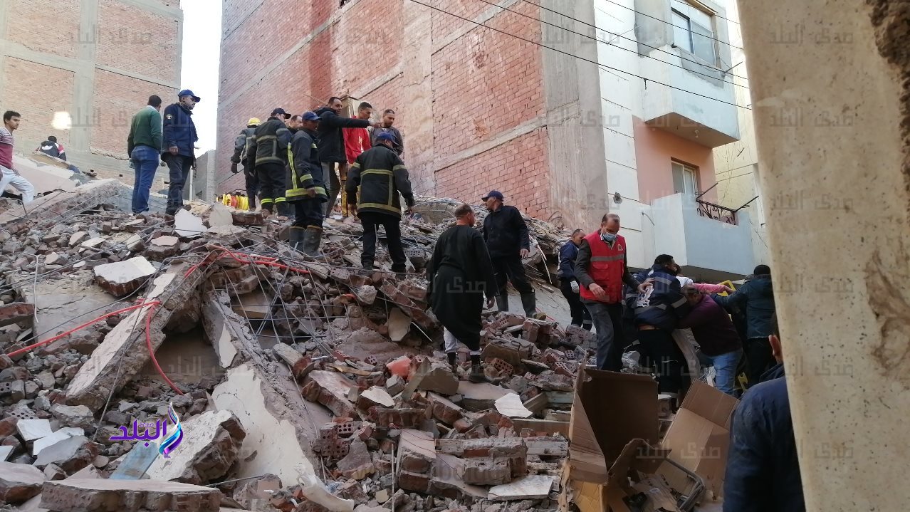 وتبين من المعاينة والفحص انهيار منزل مكون من 5 طوابق بمنطقة قلته امتداد الجمعية الشرعية مأهول بالسكان