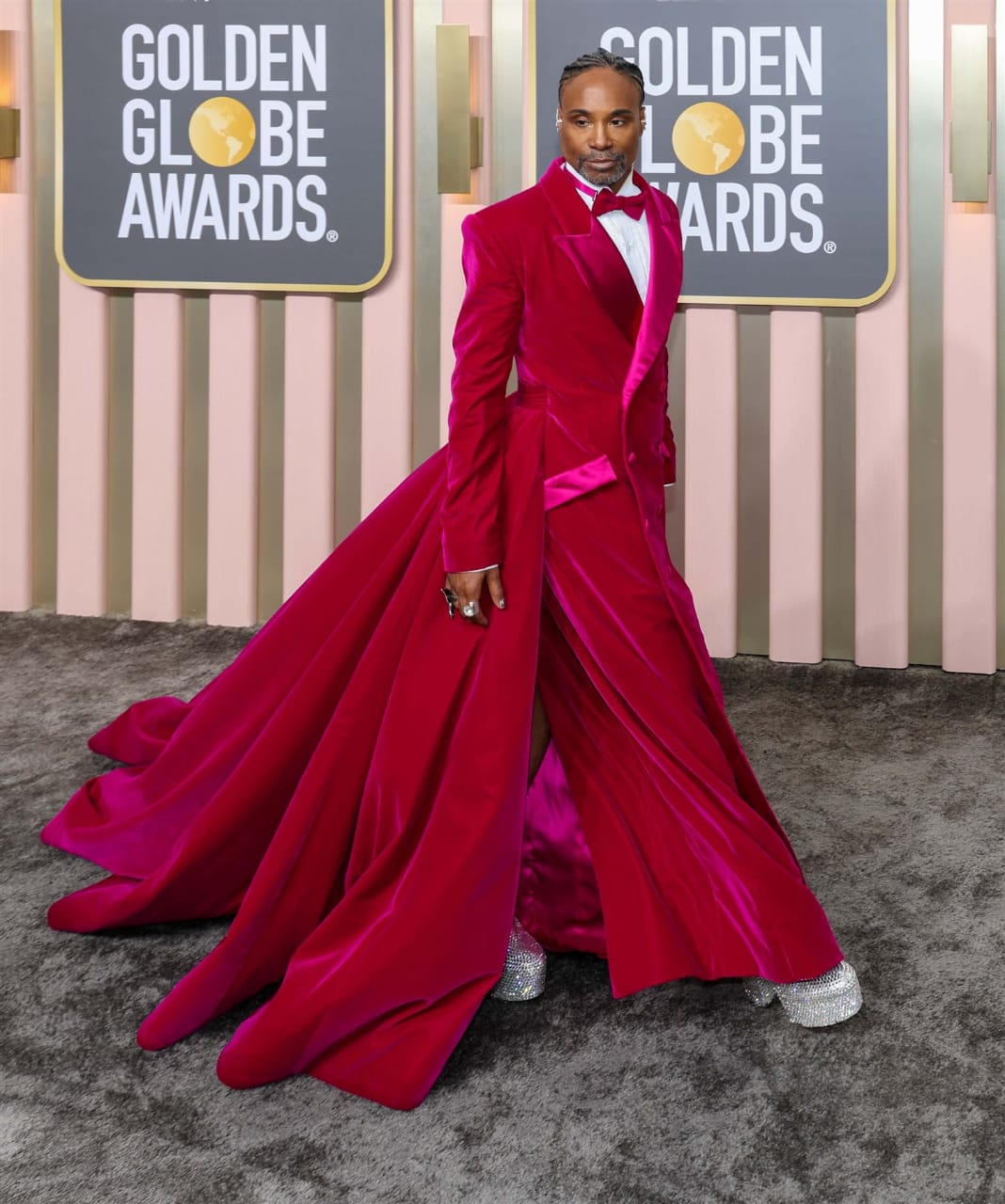 كعادته ظهر الممثل والمغني الأمريكي بيلي بورتر بإطلالة غريبة في حفل توزيع جوائز جولدن جلوب في نسخته الـ 80 صباح اليوم، مُرتديًا بدلة نسائية للتعبير عن معتقداته وأفكاره.