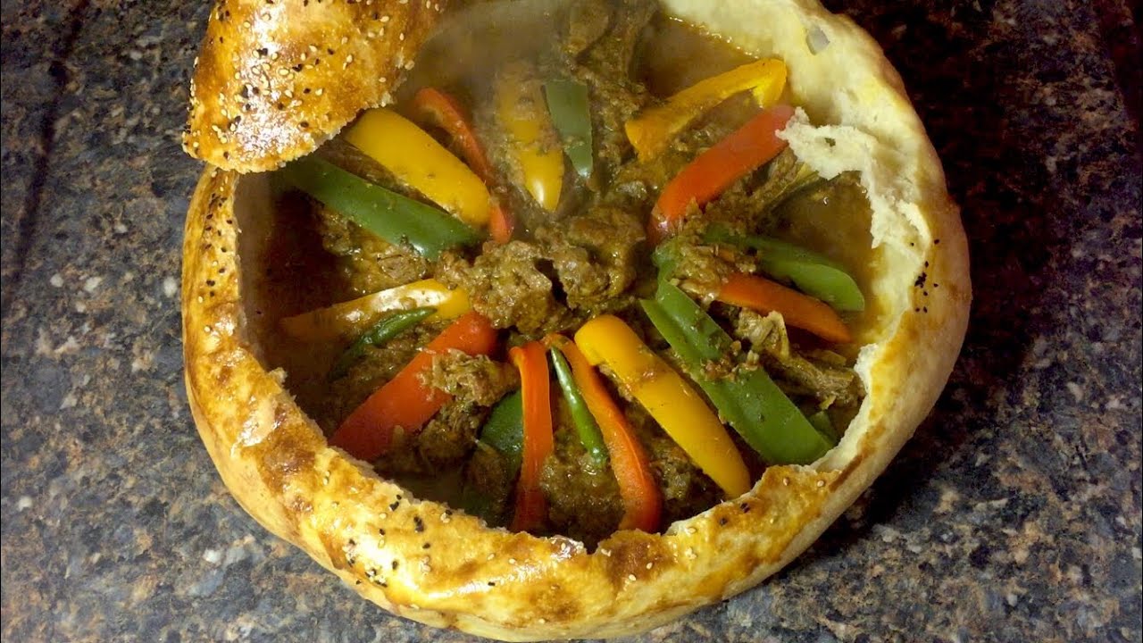 يصب كوبان من مرقة الدجاج في طنجرة كبيرة وتسلق الخضار فيها بعد تقطيعها ويضاف التوابل والحمص ورب البندورة والسكر والدقيق ويترك على نار خفيفة لمدة 10 دقائق.