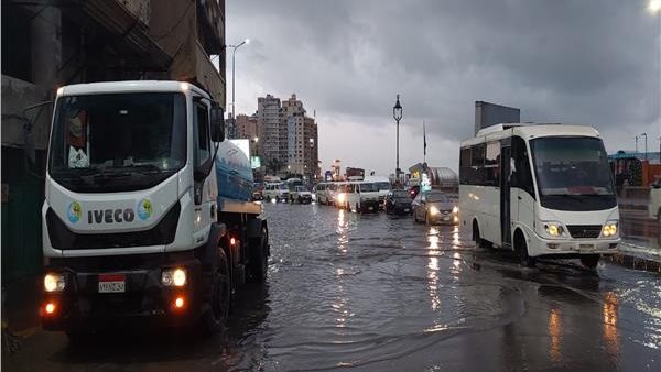 وشهدت المحاور المرورية الرئيسية سيولة مرورية في ظل تواجد عشرات السيارات من شركة الصرف لكسح المياه من الشوارع والمحاور الرئيسية، كالكورنيش وشارع أبوقير ومدخل الطريق الدولي الساحلي.