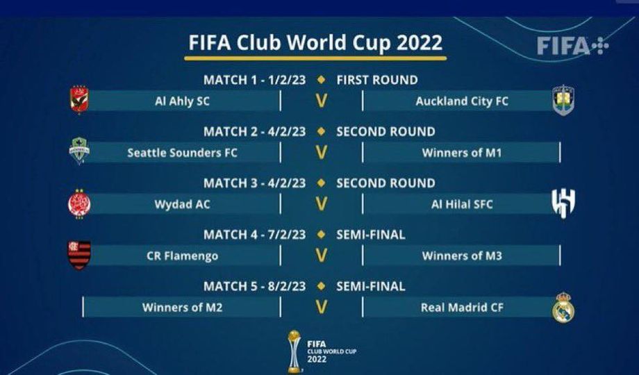 ريال مدريد vs الفائز من مواجهة سياتل ساوندرز الامريكي vs الفائز من مباراة الأهلي وأوكلاند سيتي "نصف النهائي " 8-2 -2023