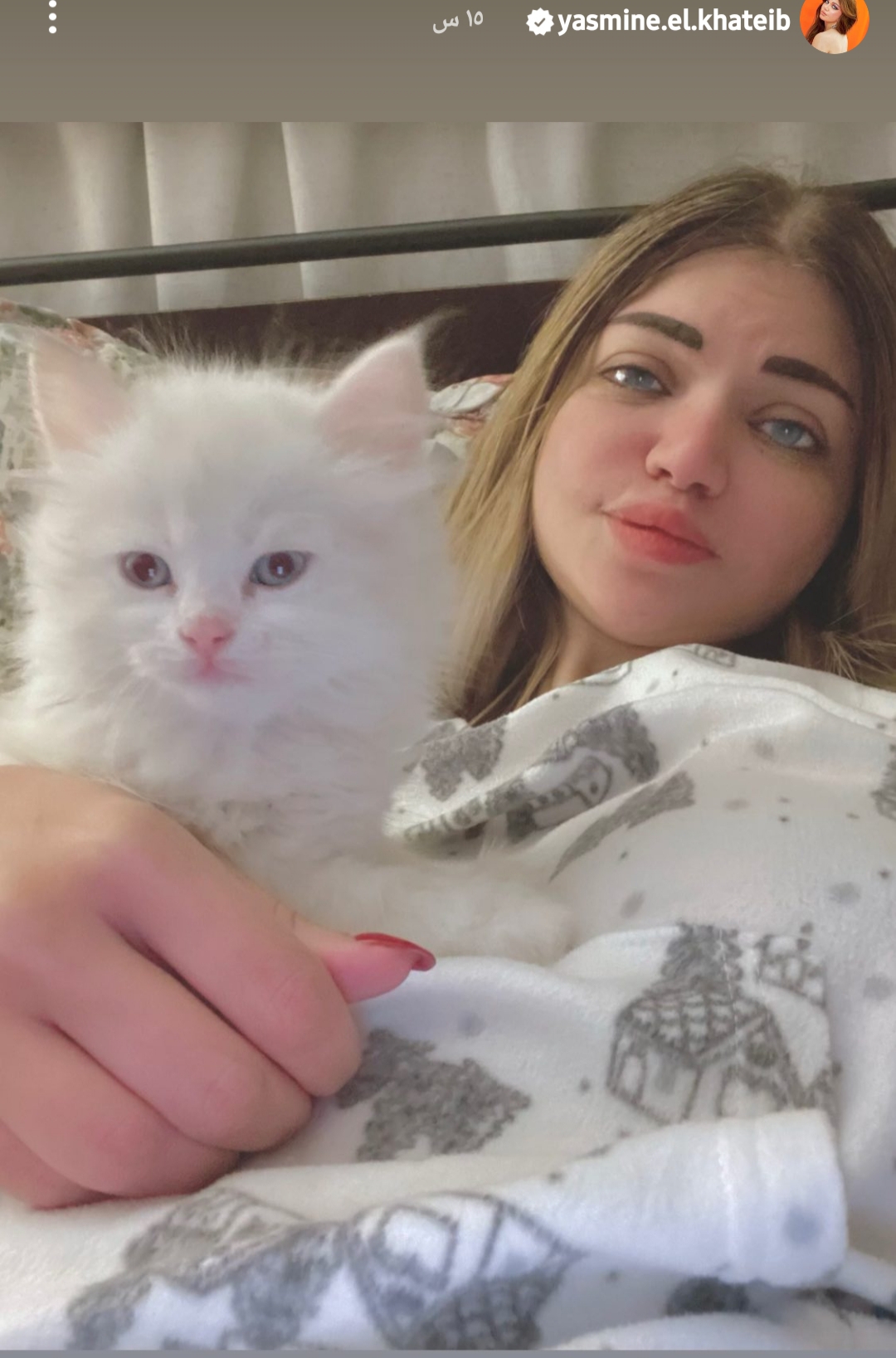 شاركت الفنانة والإعلامية ياسمين الخطيبمتابعيها صورة جديدة لها فى أحدث ظهور لها، عبر خاصية الأستوري على حسابها بموقع تبادل الصور والفيديوهات "إنستجرام"، وقد ظهرت بلوك ناعم ورقيق للغاية مع قطتها.