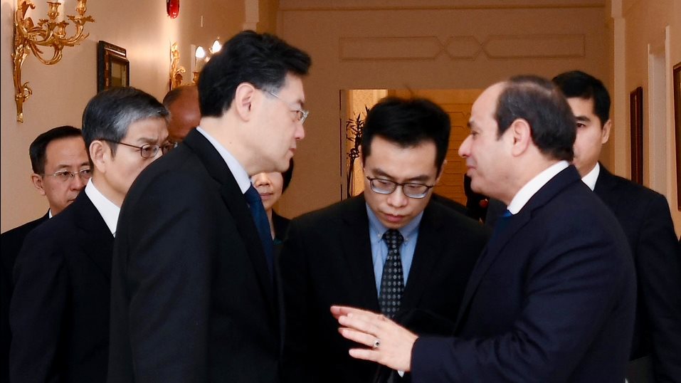 من جانبه؛ نقل وزير الخارجية الصيني إلى الرئيس تحيات الرئيس شي جين بينج، معرباً عن حرص الصين على استمرار تطوير علاقاتها الاستراتيجية مع مصر كأولوية رئيسية ونهج ثابت، ومشيراً إلى ما تكنه بلاده من احترام وتقدير لمصر في ظل دورها المحوري كركيزة أساسية لاستقرار منطقة الشرق الأوسط ومركز ثقل العالم العربي والقارة الأفريقية بالقيادة الحكيمة والمتزنة للرئيس، مع التأكيد على ثبات دعم الصين لمصر في جهود التنمية الشاملة ومكافحة الإرهاب وتحقيق الأمن والاستقرار الإقليميين.
