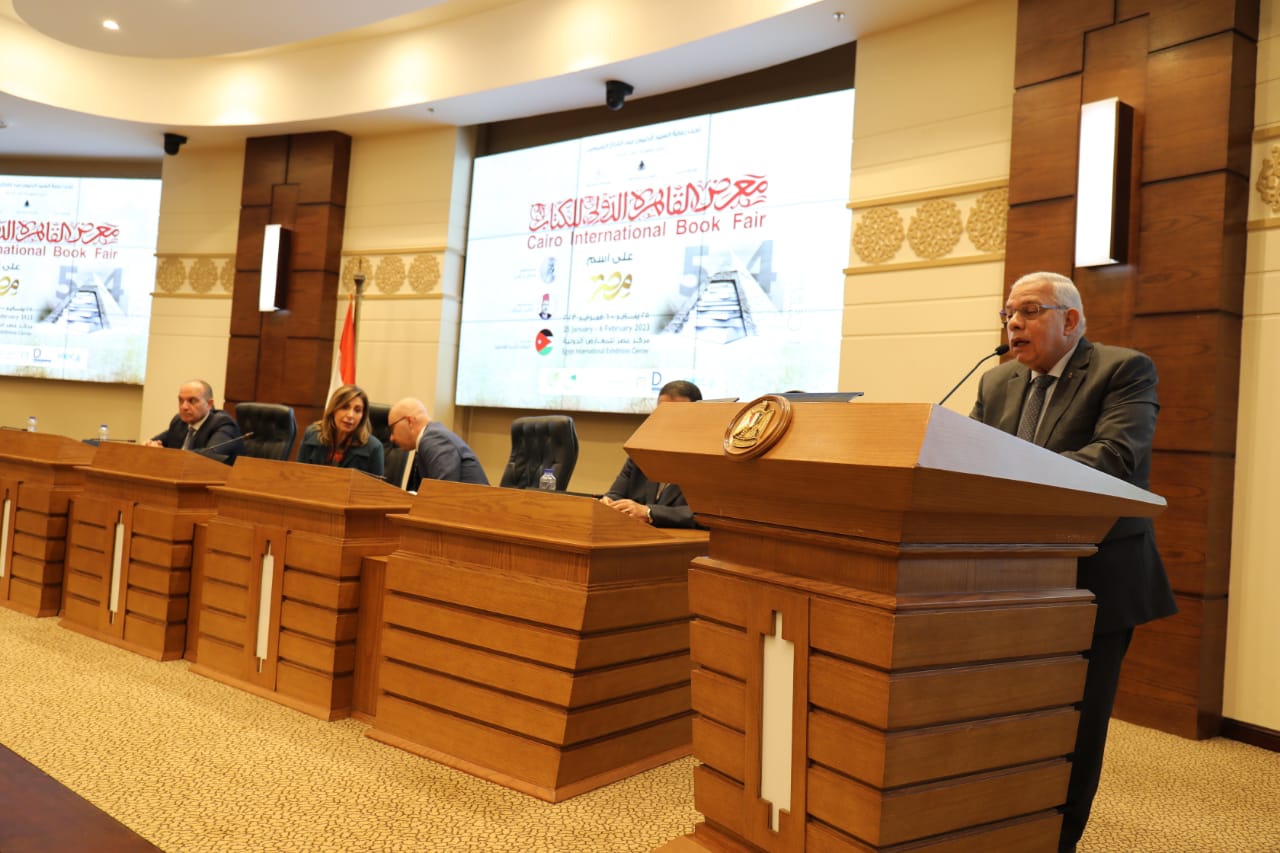 عقدت الدكتورة نيفين الكيلاني وزيرة الثقافة، اليوم الاثنين 16 يناير 2023، مؤتمرًا صحفيًا بمركز المنارة للمؤتمرات بالتجمع الخامس، للكشف عن تفاصيل الدورة 54 من معرض القاهرة الدولي للكتاب، التي يفتتحها الدكتور مصطفى مدبولي رئيس مجلس الوزراء، وتأتي تحت شعار: على اسم مصر- معًا: نقرأ.. نفكر.. نبدع، وتُقام في الفترة من 25 يناير حتى 6 فبراير المقبل، بمركز مصر للمعارض الدولية، وتحل عليها المملكة الأردنية الهاشمية ضيف شرف، وقد تم اختيار الكاتب صلاح جاهين شخصية المعرض، والكاتب كامل كيلاني شخصية معرض كتاب الأطفال، وذلك بحضور الدكتور أحمد بهي الدين رئيس الهيئة المصرية العامة للكتاب، وأمجد العضايلة سفير الأردن في القاهرة، وسعيد عبده رئيس اتحاد الناشرين المصريين، ومحمد رشاد رئيس اتحاد الناشرين العرب، والشريك الاستراتيجي مركز مصر للمعارض الدولية، وممثلو الشركة المتحدة للطباعة والنشر وتكنولوجيا المعلومات المنفذة للمنصة الرقمية الخاصة بالمعرض، وممثل عن رئيس مجلس إدارة البنك الأهلي المصري.